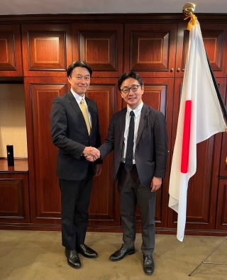 德島縣知事後藤田正純禮節性拜訪三浦總領事(大使) 2025/1/17 德島縣知事後藤田正純禮節性拜訪三浦總領事(大使) 1月16日,總領事(大使)三浦潤接受德島縣知事後藤田正純的禮節性拜訪,並就進一步擴大德島縣與香港的交流交換了意見。