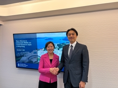 三浦潤總領事(大使)與香港科技大学校長葉玉如會面 2025/11/10 三浦潤總領事(大使)與香港科技大学校長葉玉如會面 三浦潤總領事(大使)於11月7日與香港科技大学校長葉玉如進行會面,並就進一步發展日本與香港之間的学術、青少年、文化交流交換了意見。